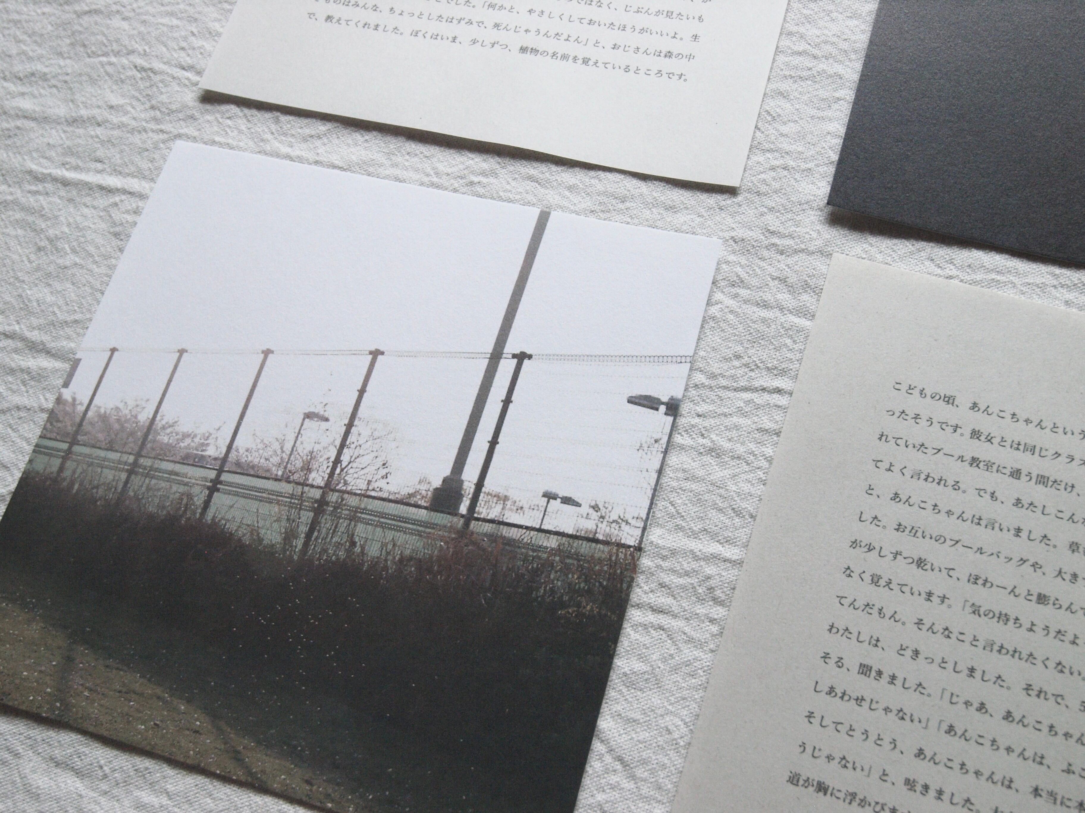 ごはんとアパートさんのショートストーリーのテキストが3枚、秋田京花の写真が3枚、それぞれ順番に重なっています。秋田が提示した写真に、ごはんとアパートさんがショートストーリーをつけてくださいました。