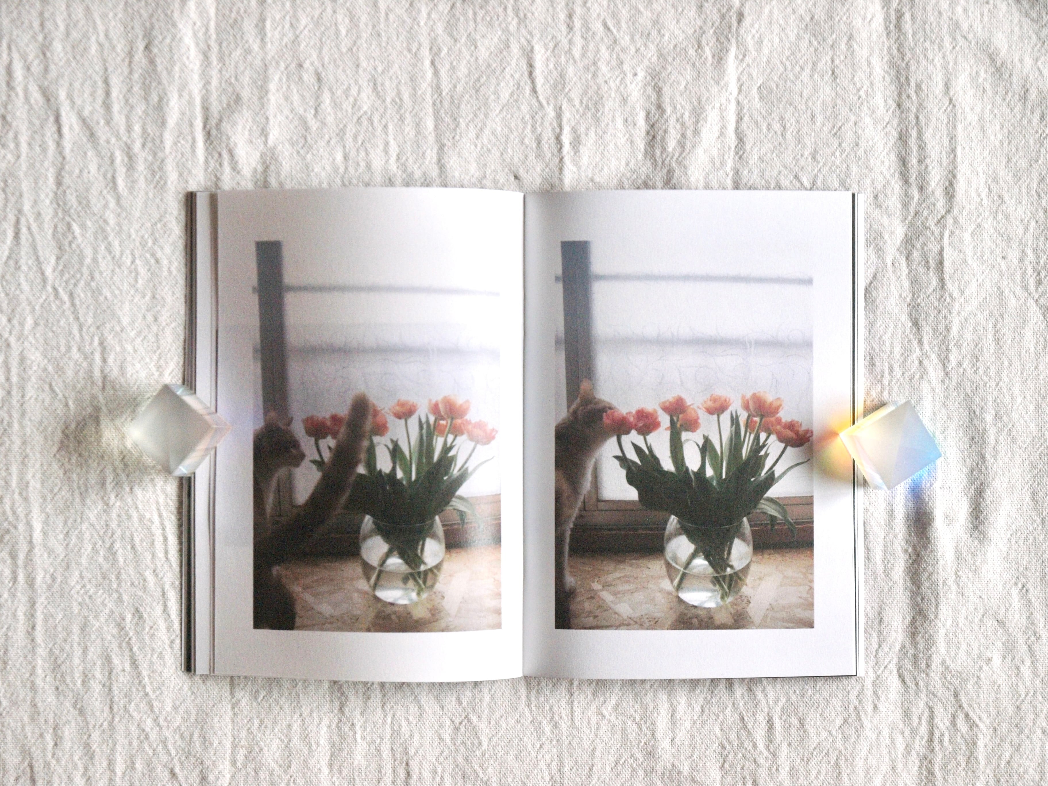 お守りとして持ち歩けるように、A6判という小さな本にしました。ちょうど母子手帳と同じサイズ。48ページ、写真31点。制作の過程やステートメントを記載した、3,000字程度のテキストを同封します。