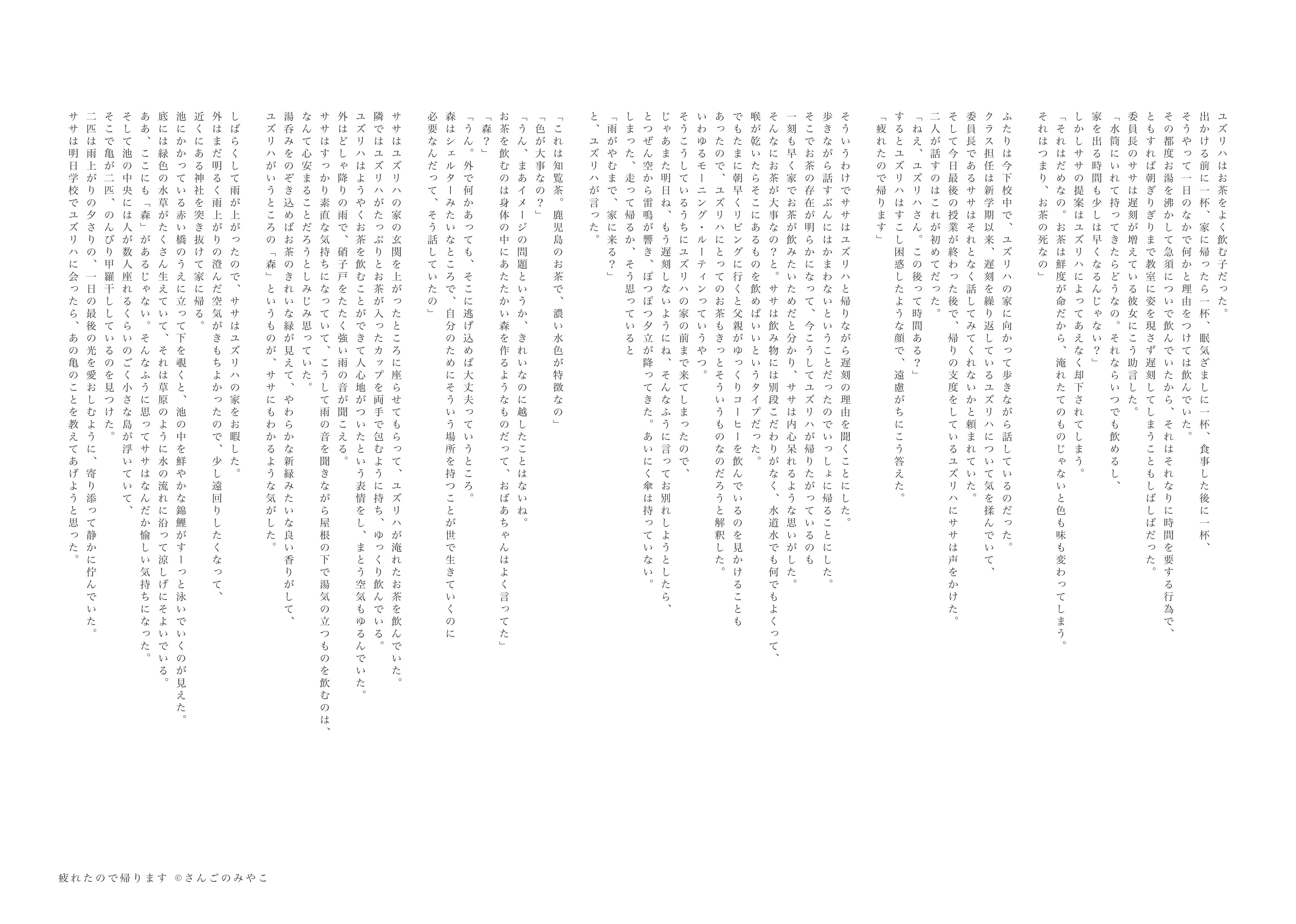詩や物語を書かれているさんごのみやこさんと共作のカードです。私が提示した写真に、さんごのみやこさんが「疲れたので帰ります」という物語で応答してくださいました。